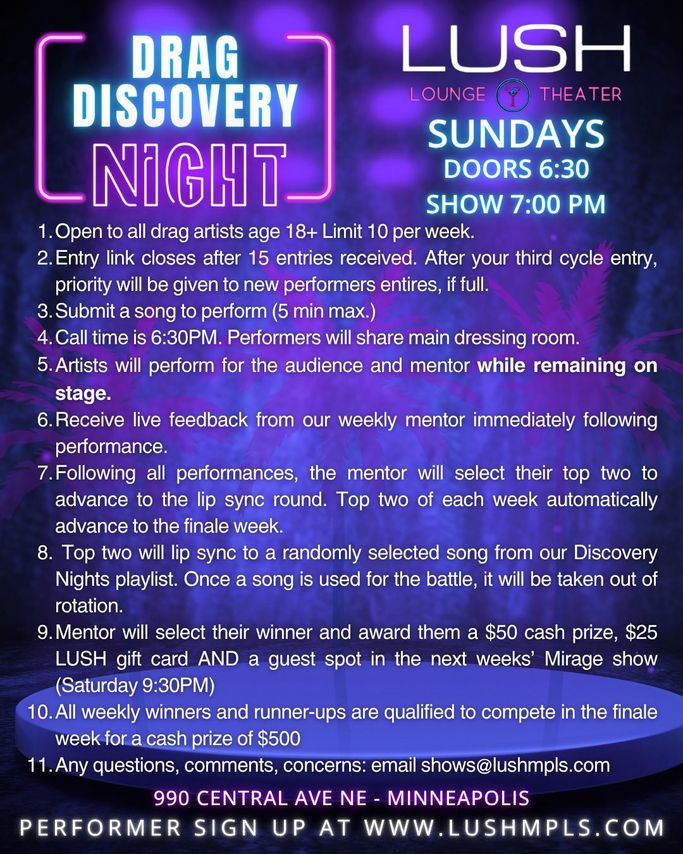 Drag Discovery is such a vital platform for the Minneapolis scene. What was the "lightbulb moment" that made you realize LUSH needed a dedicated space for emerging artists?