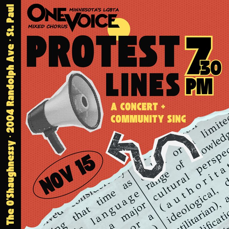 One Voice Mixed Chorus, Minnesota’s premier LGBTQIA+ and allied ensemble, presents Protest Lines.
