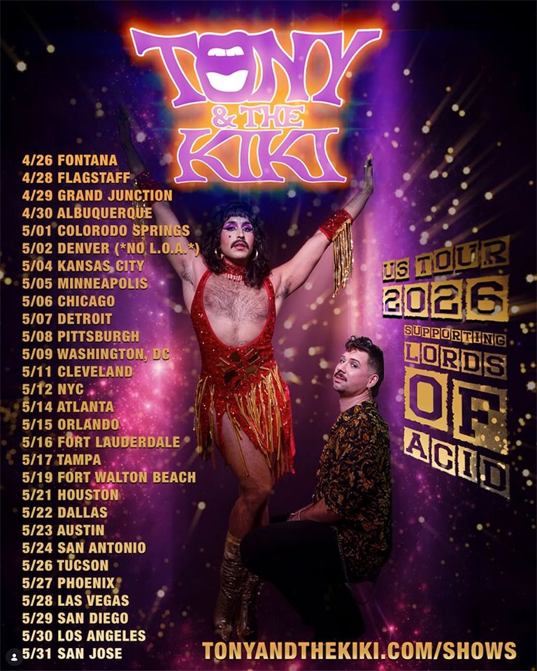 Tony & The Kiki do not simply take the stage; they set it on fire! The New York-born duo, known for their theatrical performances and celebration of queer joy, have created a space where glam rock, funk, and pop converge into a sound that feels both nostalgic and distinctly modern. When they arrive at Varsity Theater on May 5, 2026, Minneapolis audiences can expect an experience that feels closer to spectacle than a traditional concert.